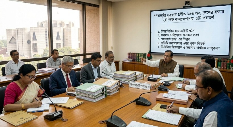 ১. বিষয়ভিত্তিক সাব-কমিটি গঠন: ১৪ জনের মূল কমিটির পক্ষে ১৩৩টি অধ্যাদেশ পড়া বা বিশ্লেষণ করা বাস্তবিক নয়। এক্ষেত্রে অর্থ, আইন ও প্রশাসন—এই তিনটি প্রধান খাতে ভাগ করে ৩টি পৃথক সাব-কমিটি গঠন করা যেতে পারে। প্রতিটি সাব-কমিটি নির্দিষ্ট সংখ্যক অধ্যাদেশ নিয়ে কাজ করলে আগামী ১৫-২০ দিনের মধ্যে একটি নিরেট রিপোর্ট দেওয়া সম্ভব হবে।