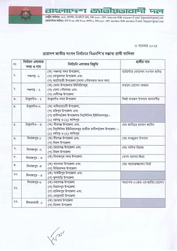 বিএনপির প্রার্থীর তালিকা নিচে তুলে ধরা হলো–