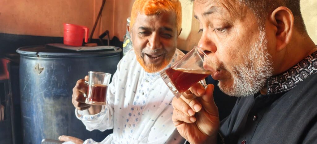 নিয়মিত এই আড্ডার ফাঁকেই আজ মুতিন স্যার তৃপ্তির সঙ্গে বলে ওঠেন, “আহঃ কি চমৎকার মজা, গরম চায়ের টান!” তাঁর এই সহজ-সরল ও আন্তরিক অভিব্যক্তি উপস্থিত অন্যদেরও নজর কাড়ে। সেখানে উপস্থিত নেত্রকোনা জেলার খালিয়াজুড়ি উপজেলা প্রেসক্লাবের আহবায়ক মোহাম্মদ হাবিবুল্লাহ এই সুন্দর মুহূর্তটি ক্যামেরাবন্দি করেন এবং তাঁদের এই অকৃত্রিম বন্ধুত্বের গল্পটি তুলে ধরেন।