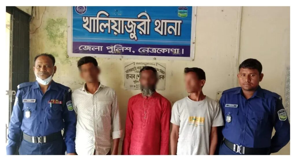 পুলিশ সূত্রে জানা যায়, খালিয়াজুড়ি থানার এসআই নাজমুল হাসান ও তাঁর সঙ্গীয় ফোর্স গোপন সংবাদের ভিত্তিতে মাইজপাড়া এলাকায় একটি পরিত্যক্ত টিনের ঘরে অভিযান পরিচালনা করেন। এ সময় মাদক কেনাবেচারত অবস্থায় মোহনগঞ্জ উপজেলার হাটনাইয়া গ্রামের মামুন মিয়া ওরফে পিচ্চি মামুন (৩২), তাহেনুর রহমান ওরফে মিজানুর রহমান (৩২) এবং সিপন মিয়াকে (৪৫) হাতে-নাতে আটক করা হয়। তাঁদের তল্লাশি করে ১১ পিস ইয়াবা ট্যাবলেট উদ্ধার করা হয়।