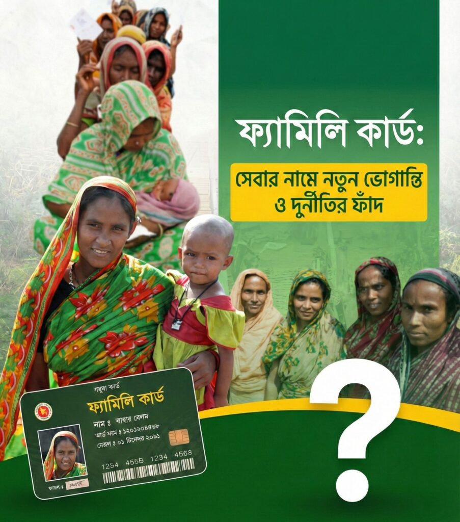 একজন নাগরিকের পূর্ণাঙ্গ তথ্য সরকারে এনআইডি ডাটাবেজে সংরক্ষিত আছে। চাল, ডাল, গম বা অন্যান্য ভাতার সুবিধা এই কার্ডের মাধ্যমেই বণ্টন করা সম্ভব। নতুন করে ‘ফ্যামিলি কার্ড’ বা অন্য কোনো নামে কার্ড প্রবর্তন করার অর্থ হলো—আবার নতুন করে ফরম পূরণ, ছবি তোলা এবং দীর্ঘসূত্রিতা। যেখানে একটি স্মার্ট কার্ডেই সব সমাধান সম্ভব, সেখানে নতুন কার্ডের বোঝা চাপানো কোনোভাবেই গ্রহণযোগ্য নয়।