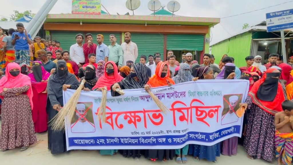 নোয়াখালীর হাতিয়া উপজেলায় জাতীয় সংসদে দেওয়া এক বক্তব্যকে কেন্দ্র করে সংসদ সদস্য আব্দুল হান্নান মাসউদের বিরুদ্ধে বিক্ষোভ ও ঝাড়ু মিছিল অনুষ্ঠিত হয়েছে। বিএনপিকে নিয়ে অশালীন মন্তব্য এবং ‘ভুয়া ধর্ষণ ইস্যু’ নিয়ে বিভ্রান্তিকর বক্তব্য দেওয়ার অভিযোগে এই কর্মসূচি পালন করা হয়।