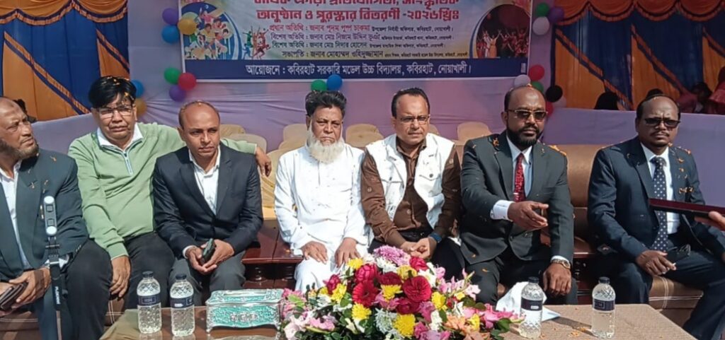 উৎসবমুখর পরিবেশে নোয়াখালীর কবিরহাট সরকারি মডেল উচ্চবিদ্যালয়ের বার্ষিক ক্রীড়া ও সাংস্কৃতিক প্রতিযোগিতা অনুষ্ঠিত হয়েছে। মঙ্গলবার (২৭ জানুয়ারি) সকাল ১০টায় বিদ্যালয় মাঠে এই প্রতিযোগিতার আয়োজন করা হয়।