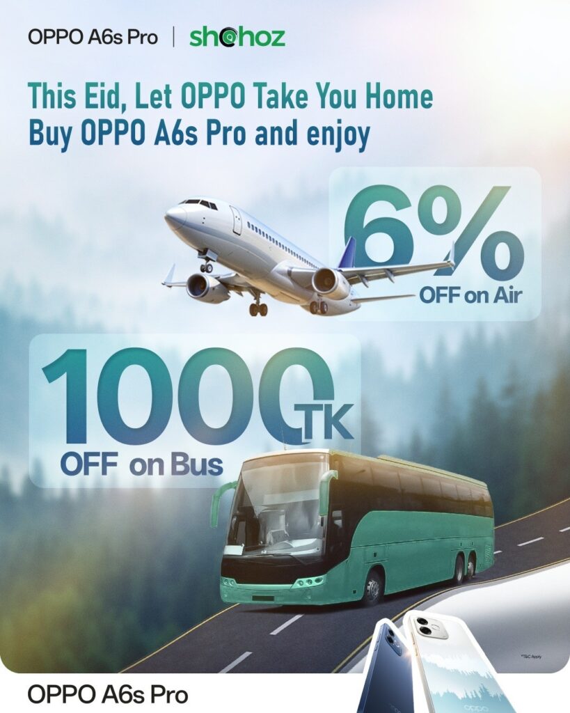 আগামী ০৮ এপ্রিল পর্যন্ত চলমান এই ক্যাম্পেইনে অপো এ৬এস প্রো (A6S Pro) ক্রেতারা বিশেষ ভ্রমণ সুবিধা উপভোগ করতে পারবেন: