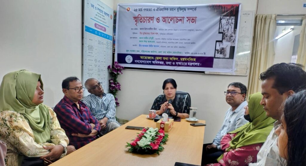 স্কুল, কলেজ ও মাদ্রাসা শিক্ষার্থীদের নিয়ে ‘২৫ মার্চ গণহত্যা দিবস ও ঐতিহাসিক মহান মুক্তিযুদ্ধ সম্পর্কে স্মৃতিচারণ ও আলোচনা সভা’ আয়োজন করেছে ময়মনসিংহ তথ্য অফিস।