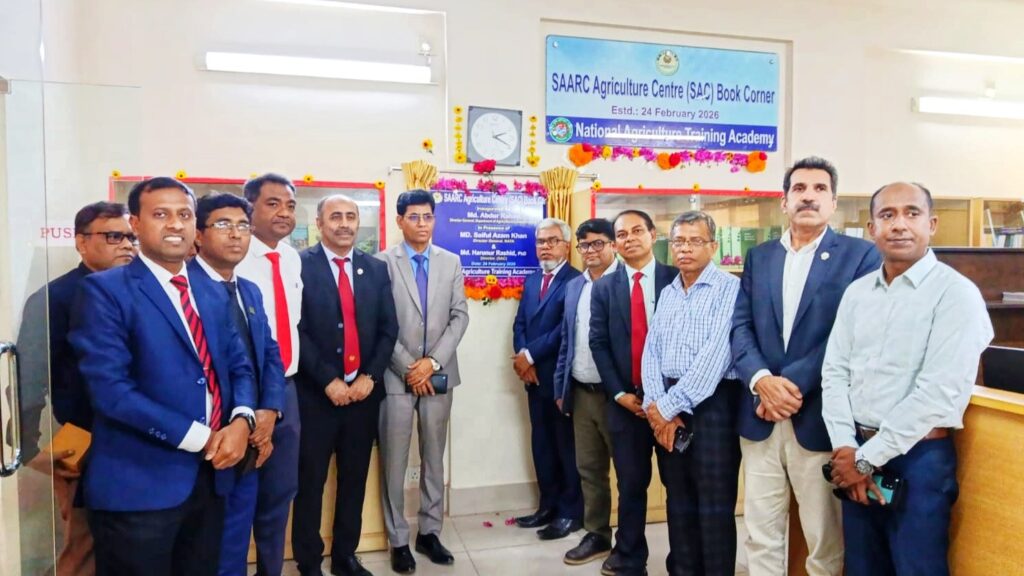 কৃষি খাতে আঞ্চলিক জ্ঞান বিনিময় ও গবেষণালব্ধ তথ্য ছড়িয়ে দেওয়ার লক্ষ্যে গাজীপুরের ন্যাশনাল এগ্রিকালচার ট্রেনিং একাডেমিতে (নাটা) ‘সার্ক এগ্রিকালচার সেন্টার (SAC) বুক কর্নার’ উদ্বোধন করা হয়েছে। মঙ্গলবার (২৪ ফেব্রুয়ারি ২০২৬) এক অনুষ্ঠানের মাধ্যমে এই বুক কর্নারের আনুষ্ঠানিক যাত্রা শুরু হয়।