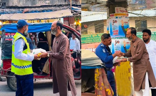গত ৩ মার্চ বিকেলে ময়মনসিংহ নগরীর টাউন হল, নতুন বাজার, বাতিরকলসহ আশেপাশের বিভিন্ন গুরুত্বপূর্ণ পয়েন্টে এই ইফতার বিতরণ করা হয়। যানজট নিরসন ও মানুষের যাতায়াত নির্বিঘ্ন করতে তীব্র রোদ-ধুলাবালির মাঝে রাস্তায় দাঁড়িয়ে দায়িত্ব পালন করা ট্রাফিক পুলিশ সদস্যদের হাতে তিনি এই ইফতার তুলে দেন।