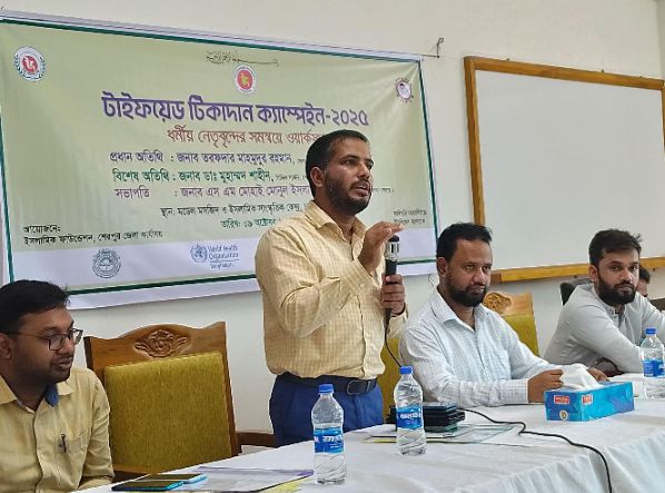 শেরপুরে ইউনিসেফ ইসলামিক ফাউ-েশনের উদ্যোগে ১২ অক্টোবর ২০২৫ সফলভাবে টাইফয়েড টিকাদান কর্মসূচি সফলভাবে বাস্তবায়নের জন্য এক ওয়ার্কশপ অনুষ্ঠিত হয়েছে, ৯ অক্টোবর বৃহস্পতিবার সকালে চাপাতলী মডেল মসজিদে অবস্থিত শেরপুর ইসলামিক ফাউ-েশনের মিলনায়তনে উক্ত অনুষ্ঠানে ইফার ডিডি এস এম মোহাই মোনুল ইসলামের সভাপতিত্বে অতিথি হিসেবে বক্তব্য রাখেন জেলা প্রশাসকের প্রতিনিধি অতিরিক্ত জেলা ম্যাজিস্ট্রেট শাকিল আহমেদ, মুখ্য আলোচক ছিলেন সিভিল সার্জন ডাঃ মোহাম্মদ শাহীন প্রমূখ। অনুষ্ঠানে বক্তব্য রাখেন মেডিকেল অফিসার ডাঃ আহসান হাবীব হিমেল, ইউনিসেফের শেরপুর জেলা প্রতিনিধি ডাঃ নাজমুল হক চৌধুরী, ইউনিসেফ এর প্রতিনিধি সোহাইল আহমেদ। অনুষ্ঠানে বিভিন্ন মসজিদের ইমাম, মউশিকের শিক্ষক শিক্ষিকাগন অংশ গ্রহন করেন,সেমিনারে জানানো হয় ১২ অক্টোবর থেকে ১৫ পর্যন্ত বয়সের সকল শিশুকে টাইফয়েড এর টিকা বিনামূল্যে দেওয়া হবে,এই ঘোষনা টি শুক্রবার সকল মসজিদে মসজিদে ও মাদরাসায় বিশেষ করে মহিলা মাদরাসায় প্রচার করার জন্য উপস্থিত সবাইকে আহবান করা হয়,উল্লেখ্য যে শেরপুরে ৩ লাখ ৮৩ হাজার শিশুকে টাইফয়েড এর টিকা দেওয়া হবে।