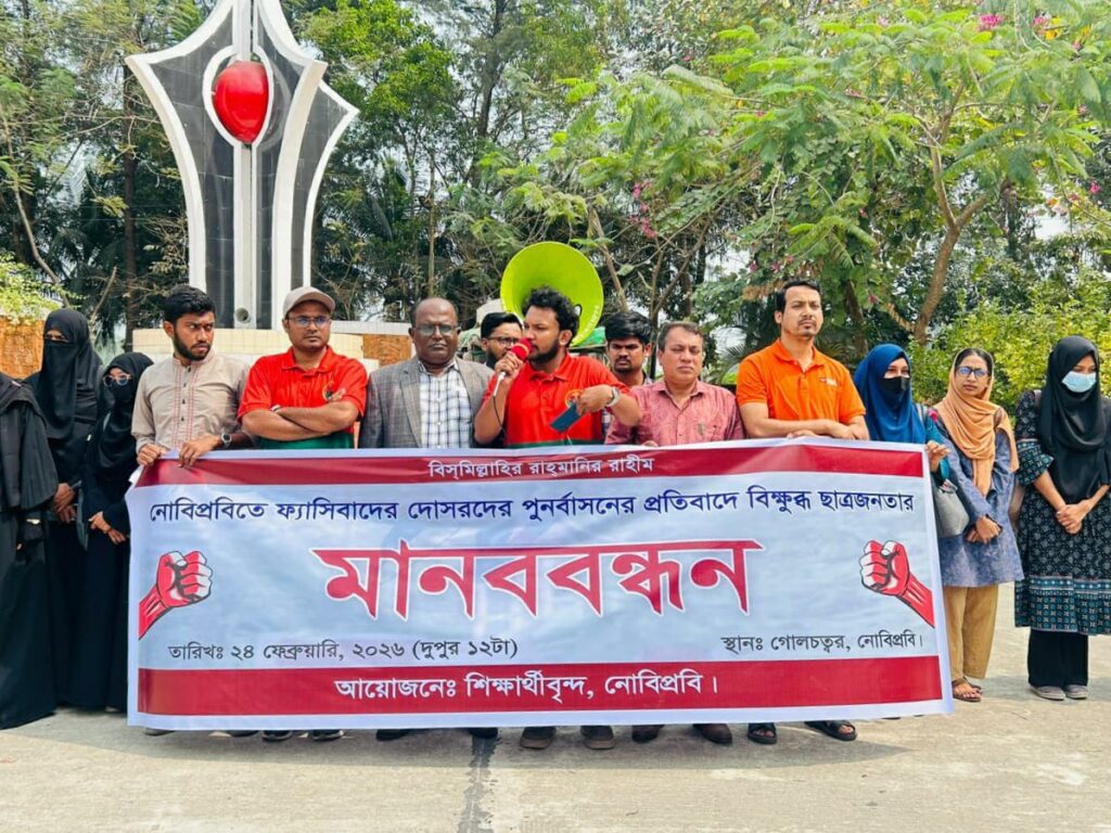 নোবিপ্রবিতে ‘ফ্যাসিস্ট’ পুনর্বাসনের প্রতিবাদে শিক্ষার্থীদের মানববন্ধন ও আল্টিমেটাম