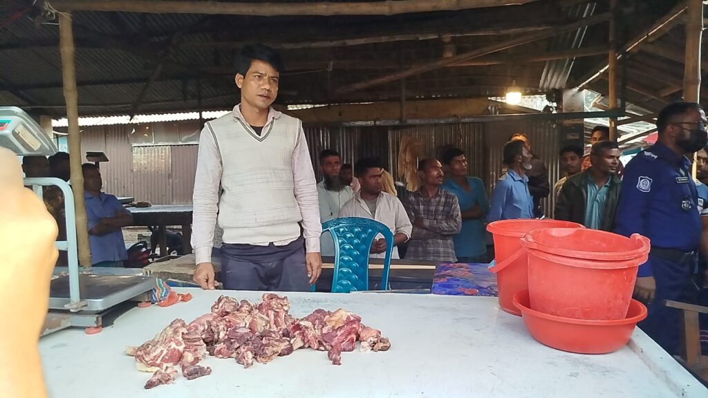 পচা মাংস বিক্রির অপরাধে ব্যবসায়ীকে জরিমানা ও মাংস জব্দ