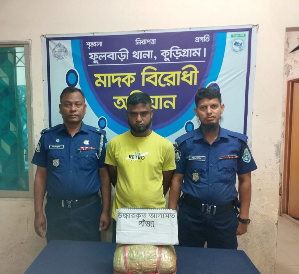 কুড়িগ্রামের ফুলবাড়ী থানা পুলিশের অভিযানে বিপুল পরিমাণ মাদকদ্রব্য গাঁজাসহ মো. জহির উদ্দিন (৪০) নামে একজনকে গ্রেপ্তার করা হয়েছে। সোমবার (৬ এপ্রিল) রাত সাড়ে ৯টার দিকে উপজেলার কবির মামুদ (খেজুরের তল) এলাকার পাকা রাস্তায় এই অভিযান পরিচালনা করা হয়।