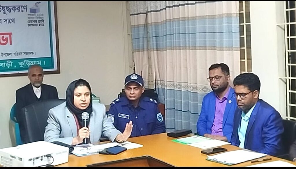 আসন্ন ‘গণতন্ত্র ২০২৬’ সংসদ নির্বাচনকে সামনে রেখে ভোটারদের সচেতনতা বৃদ্ধি এবং ভোটাধিকার প্রয়োগে উদ্বুদ্ধ করার লক্ষ্যে কুড়িগ্রামের ফুলবাড়ীতে মসজিদের ইমাম ও আলেম-উলামাদের সঙ্গে এক গুরুত্বপূর্ণ মতবিনিময় সভা অনুষ্ঠিত হয়েছে। বৃহস্পতিবার (২২ জানুয়ারি) দুপুরে ফুলবাড়ী উপজেলা পরিষদ সভাকক্ষে উপজেলা প্রশাসনের উদ্যোগে এই সভার আয়োজন করা হয়।