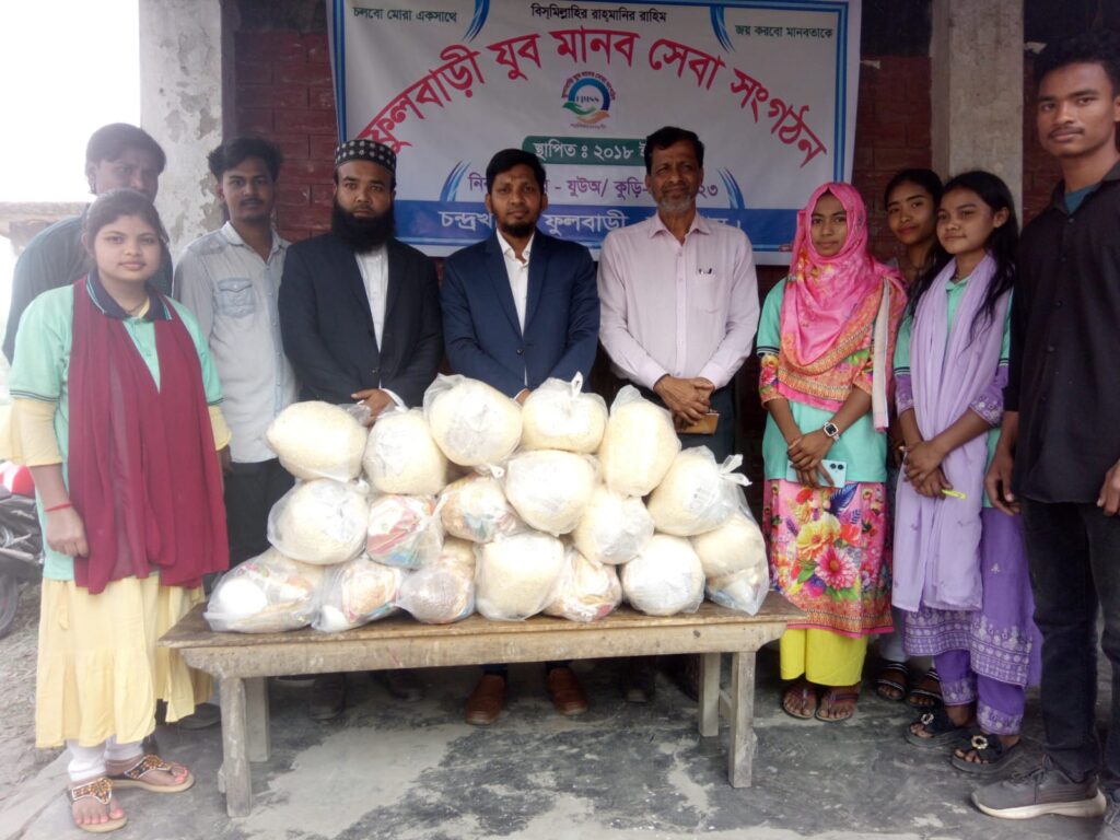 কুড়িগ্রামের ফুলবাড়ীতে ‘ফুলবাড়ী যুব মানব সেবা সংগঠন’-এর উদ্যোগে সাত দিনব্যাপী গরু মোটাতাজাকরণ প্রশিক্ষণ সফলভাবে সম্পন্ন হয়েছে। বুধবার (৩ মার্চ) প্রশিক্ষণ শেষে স্থানীয় হতদরিদ্র পরিবারের মাঝে সেমাই, চিনি ও ইফতার সামগ্রী বিতরণ করা হয়।