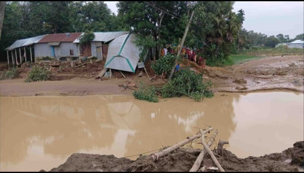 বন্যায় ১২০ মিটার বাঁধ ক্ষতিগ্রস্ত, কোটি টাকার ফসলহানি”