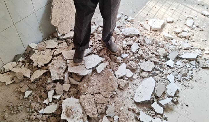 এই আকস্মিক ঘটনায় পুরো হাসপাতালে আতঙ্ক ছড়িয়ে পড়ে। জরাজীর্ণ ভবনের নিচে চিকিৎসা নিতে আসা রোগী ও তাঁদের স্বজনদের মধ্যে চরম উদ্বেগ দেখা দিয়েছে। অনেকেই ভয় ও উৎকণ্ঠায় নিরাপদ স্থানে সরে যাওয়ার চেষ্টা করেন।