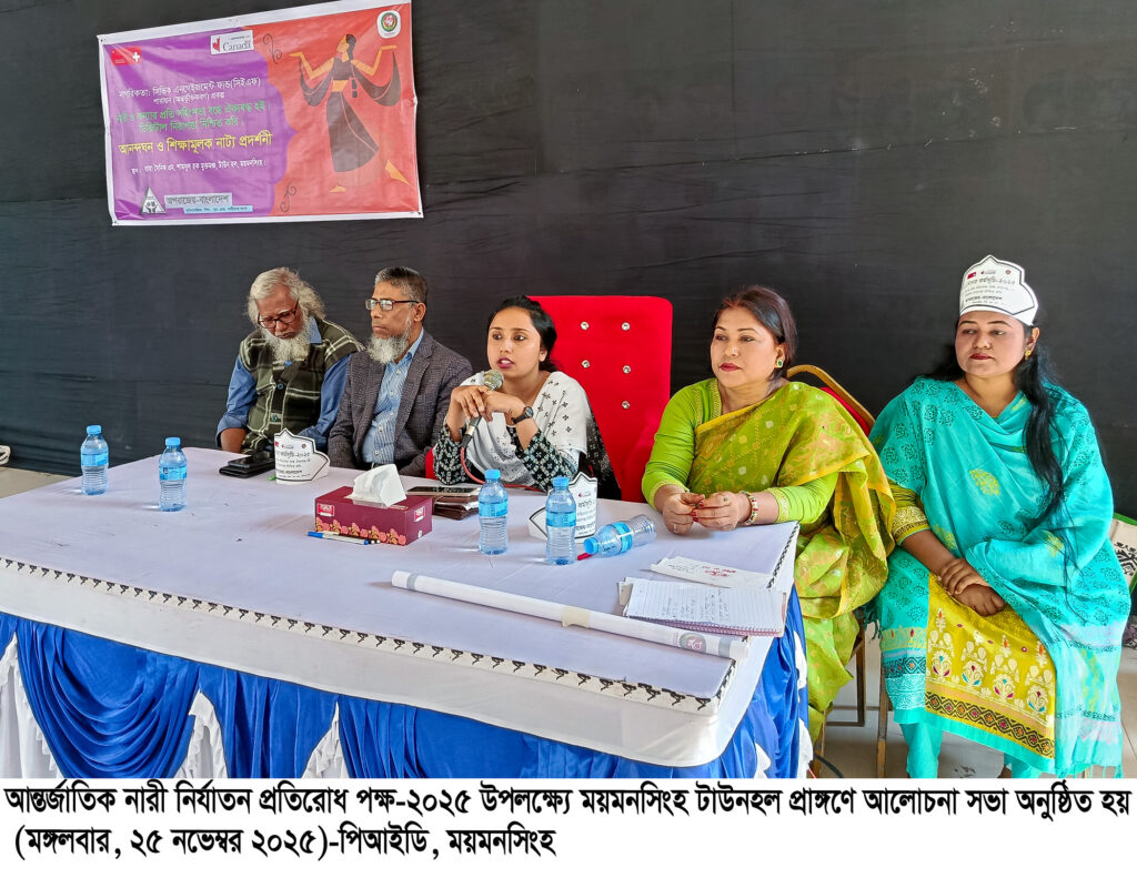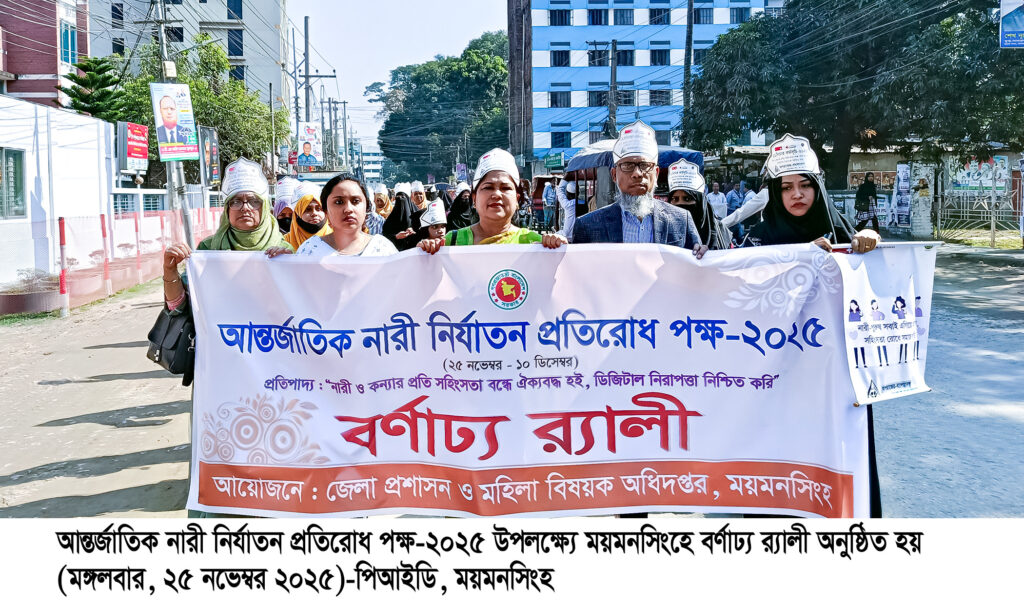 “নারী ও কন্যার প্রতি সহিংসতা বন্ধে ঐক্যবদ্ধ হই, ডিজিটাল নিরাপত্তা নিশ্চিত করি” এ প্রতিপাদ্য নিয়ে ময়মনসিংহে আন্তর্জাতিক নারী নির্যাতন প্রতিরোধ দিবস পালিত হয়েছে। আজ মঙ্গলবার (২৫ নভেম্বর) ময়মনসিংহ জেলা প্রশাসন ও মহিলা বিষয়ক অধিদপ্তর এর আয়োজনে এক বর্ণাঢ্য র্যালির আয়োজন করা হয়। এছাড়াও এই দিবস উপলক্ষে নগরীর টাউন হল ভাষা সৈনিক এম. শামসুল হক মুক্ত মঞ্চে নাগরিকতা: সিভিক এনগেজমেন্ট ফান্ড (সিইএফ) পারায়ন (অন্তর্ভূক্তিকরণ) প্রকল্প এর উদ্যোগে আনন্দঘন ও শিক্ষামূলক নাট্য প্রদর্শনী করা হয়। এ সময় প্রধান অতিথি হিসেবে উপস্থিত ছিলেন ময়মনসিংহ জেলা প্রশাসক কার্যালয়ের সহকারী কমিশনার নাজিয়া নূর লিয়া।