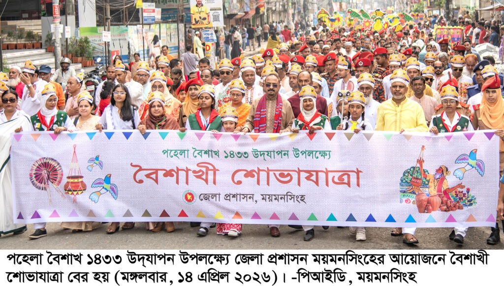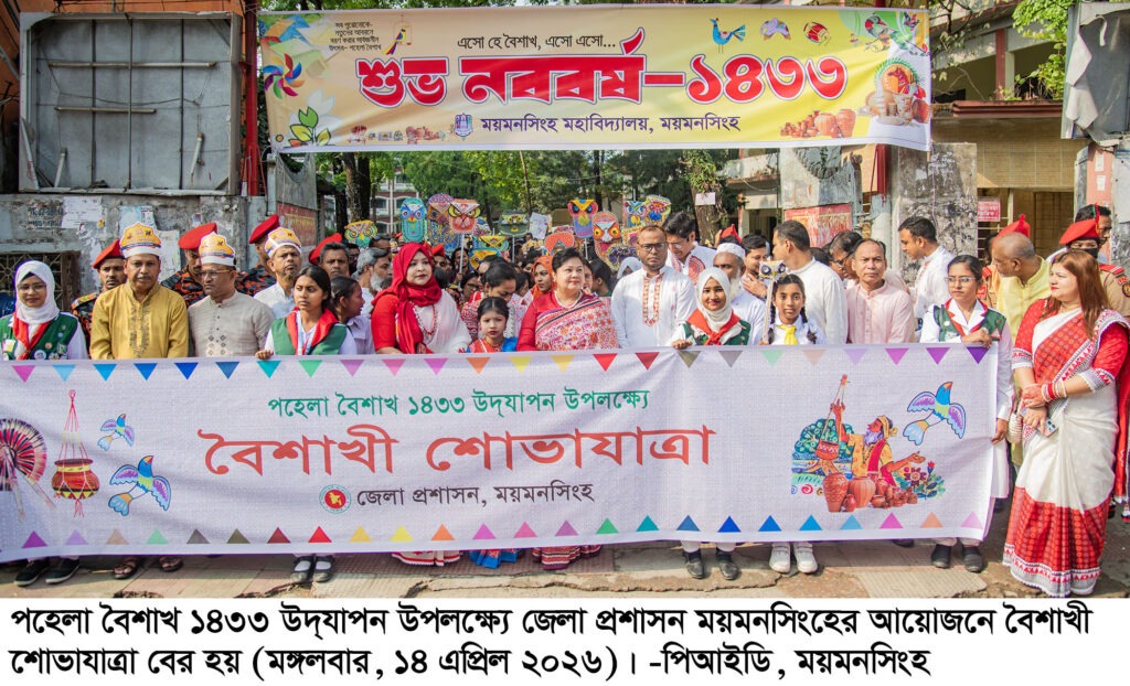 ময়মনসিংহে বর্ণিল শোভাযাত্রা ও সাংস্কৃতিক অনুষ্ঠানে নতুন বছর ১৪৩৩-কে বরণ