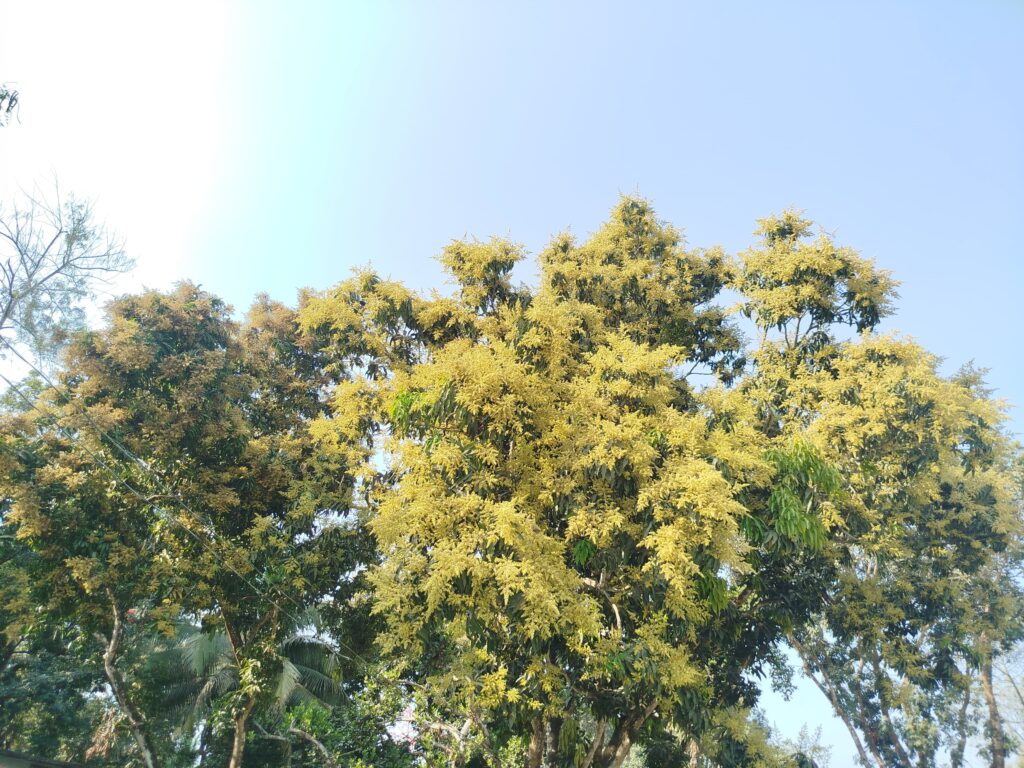 সকালবেলার সোনালী রোদে ঝলমল করা মুকুল আর হালকা বাতাসে দুলতে থাকা ডালপালা গ্রামীণ পরিবেশকে আরও প্রাণবন্ত করে তুলেছে। এই মোহনীয় প্রাকৃতিক সৌন্দর্য উপভোগ করতে এবং স্মৃতি হিসেবে ছবি তুলে রাখতে অনেক দর্শনার্থী বাগান ও বাড়ির আঙিনায় ভিড় করছেন। প্রকৃতির এই সোনালী সাজ যেমন চোখ জুড়াচ্ছে, তেমনি কৃষকদের মনেও জাগাচ্ছে নতুন আশার আলো।