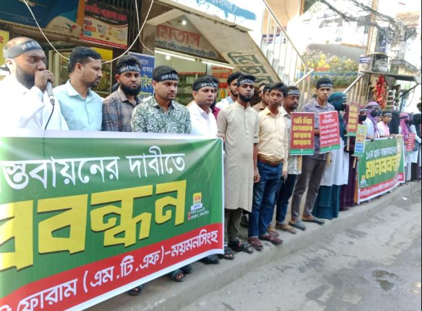 বুধবার (১৯ নভেম্বর) সকালে ময়মনসিংহ নগরীর গাঙ্গিনাপাড় প্রেসক্লাব ভবনের সামনে মেডিকেল টেকনোলজিস্ট ফোরাম (এম.টি.এফ)-এর উদ্যোগে এই মানববন্ধন কর্মসূচি অনুষ্ঠিত হয়।