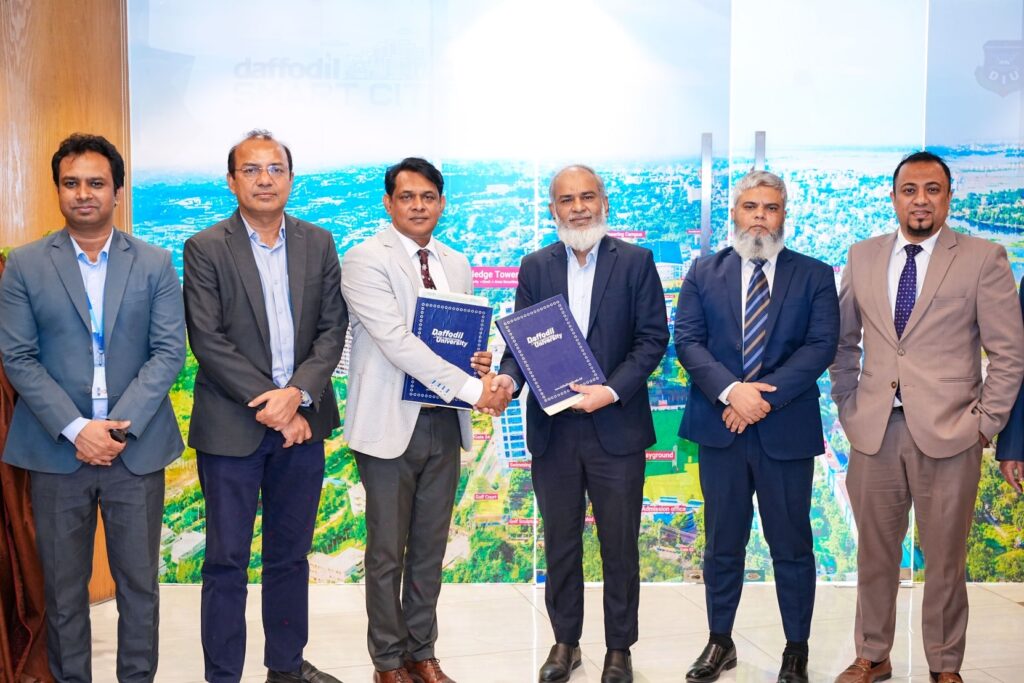 বাংলাদেশের রিয়েল এস্টেট খাতে একাডেমিক শিক্ষা ও বাস্তব প্রয়োগের মধ্যে সেতুবন্ধন গড়ে তোলার লক্ষ্যে ইউনিমাস হোল্ডিংস লিমিটেড ও ড্যাফোডিল ইন্টারন্যাশনাল ইউনিভার্সিটির (ডিআইইউ) মধ্যে একটি সমঝোতা স্মারক (MoU) স্বাক্ষরিত হয়েছে। সম্প্রতি বিশ্ববিদ্যালয়ের ইন্টারন্যাশনাল কনফারেন্স রুমে এই বিশেষ আয়োজনটি অনুষ্ঠিত হয়।